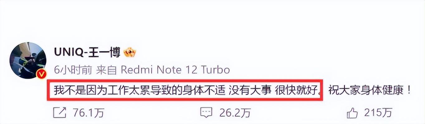 网友们对此表示非常遗憾,因为在25号那天,王一博已经抵达长沙,所有人都做好了准备,但他却因身体原因缺席,令人感到遗憾。然而,王一博本人回应说,自己的身体状况并未受到影响,向粉丝们保证只需稍事休息即可恢复。
