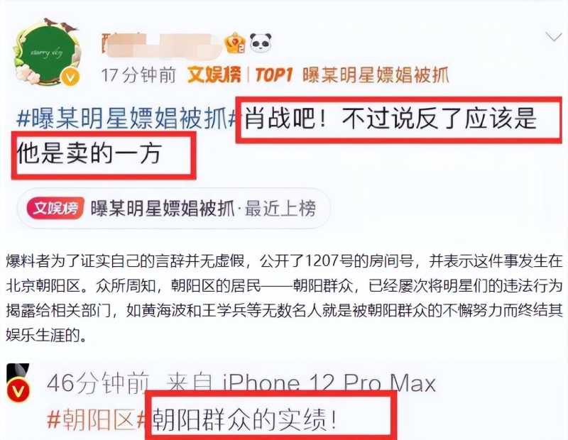 为了证实自己没有说谎,爆料者公开了涉事房间的号码1207,并指出这件事发生在北京朝阳区。众所周知,朝阳区的居民——朝阳群众,多次揭发了明星们的违法行为,例如黄海波和王学兵等众多名人就是因为朝阳群众的坚持不懈而结束了他们的演艺生涯。