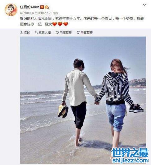 目前该账号是由两人共同打理,此前未公布恋情之前,该微博还引起不少粉丝吐槽,惹得任嘉伦的经纪人都站出来澄清。如今正在事业上升期的任嘉伦突然公布恋情,这碗狗粮撒的猝不及防,不过还是要送上祝福。