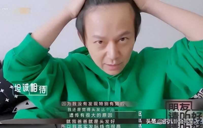 他在《向往的生活》中,看起来发量很多,但其实都是假发片的功劳,仔细一看烫过的刘海和头顶的部分之间,有一条明显的分界线,那就是真假头发的楚河汉界。