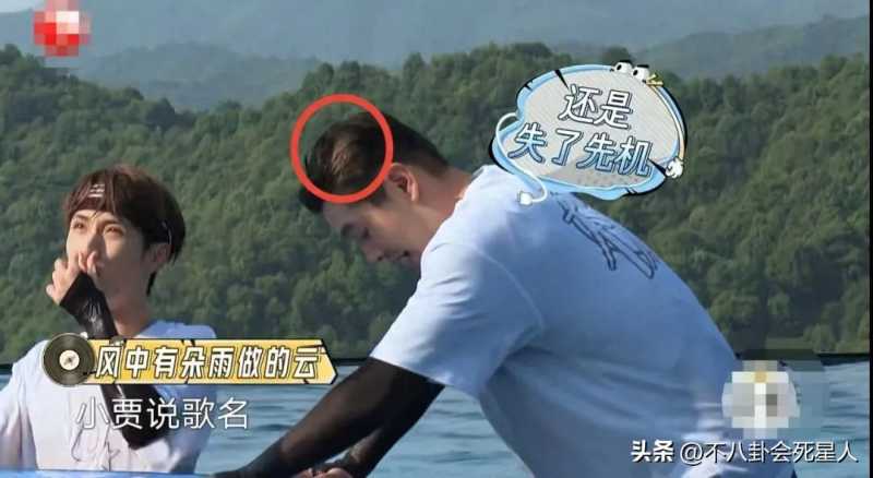 下水后的黄晓明,同样也是“植被”稀少,一张糊图都能看出头皮的纹理,和假发片伪装的黑发一比,真是泾渭分明。
