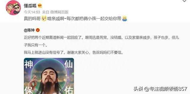 网友最想知道陈坤儿子的母亲是谁,结果,懂瓜呱来了句:“去问陈坤啊。”