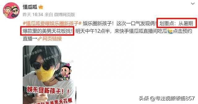 8月15日,懂瓜呱预告要爆料“暑期爆款里的美男天花板”有两个孩子!