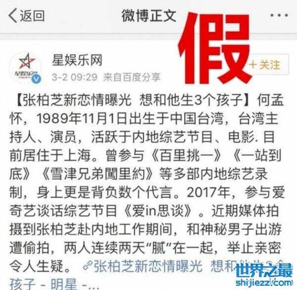 事情一经发出之后,各大娱乐媒体疯狂的转发,并且各种乱七八糟的事情都说出来了,甚至还有人说张柏芝想和何孟怀生三个娃。下面就一起来张柏芝官微出来辟谣了,张柏芝结婚实乃假新闻。只是上了一个节目而已,就出现这么多的谣言,娱乐圈的八卦实力真是厉害。↓↓↓