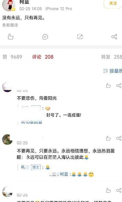 她最终也留下了“不是永远,只是再见”八个字而被封禁,解禁时间不详。