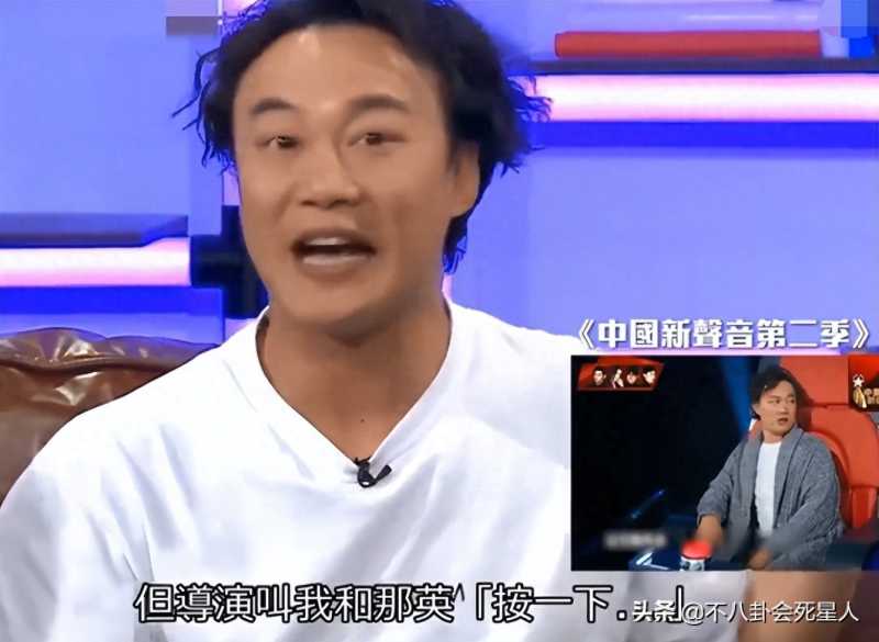 陈奕迅在一档节目中爆料过。他说有一个选手他曾犹豫是否按下转身键,结果10天后又回到《好声音》舞台上再次演唱。陈奕迅听到再度返场的声音,最终还是没有按下转身键。但他没想到,连自己都逃不过导演组的安排,导演直接示意他和那英“按一下”。