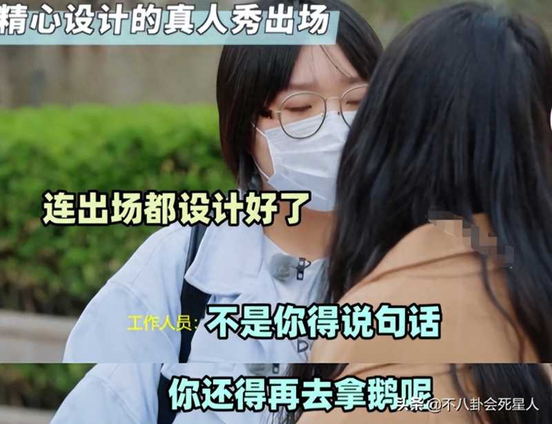 脱口秀演员李雪琴第一次参加真人秀《五十公里桃花坞》时也崩溃了,因为她的一个出场拍了四次。甚至连她没说的台词“我还有一个鹅”,也被要求重拍了两次。