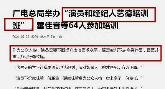 不久前,广电总局举办了名为“艺德培训班”的活动,旨在提升艺人的品德修养。这次活动邀请了雷佳音、林永健、热依扎等64位艺人,他们并非是因德行不佳而被请到,而是作为楷模,分享优秀经验,引导其他艺人做合格偶像,以德艺双馨示范娱乐圈。