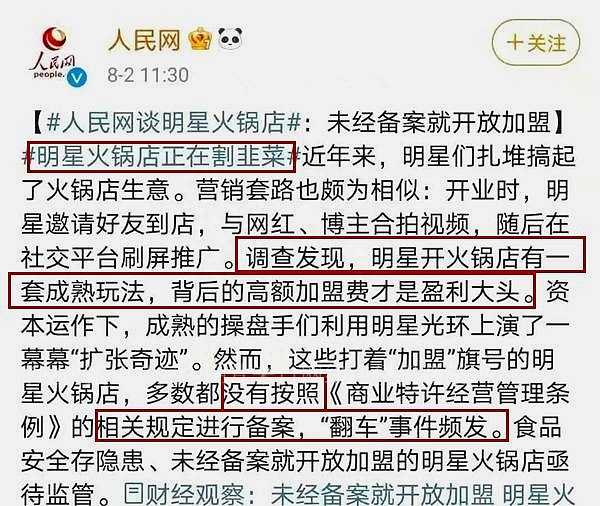 官方指出,明星开火锅店往往只是个噱头,其背后的加盟费才是重中之重。这些火锅店之所以盈利丰厚,是因为它们借助明星效应,通过名人光环吸引投资者加盟。这种商业模式带来的风险也逐渐显现,一系列火锅店的问题暴露出安全、卫生等方面的严重缺陷。