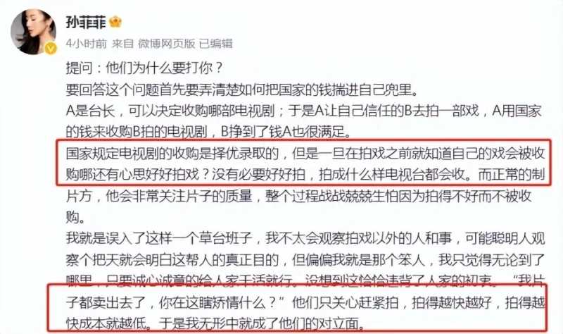 在他眼中,孙菲菲确实没有艺德,无故迟到,无缘由的中途罢演,偶尔不满剧情叫嚣着要改戏,有任何不如意都直接中途喊卡。