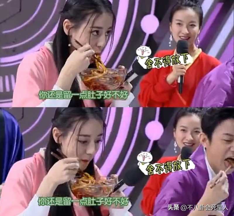 她对吃有多热爱呢?录《跑男》时,导演没喊开始,她就把道具吃光了。在山上拍戏,她就带好几包零食去剧组。