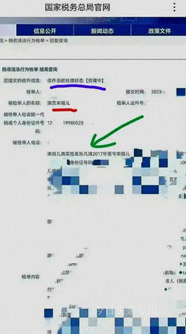 据网络爆料披露,宋祖儿被指涉嫌偷税额高达四千五百万元,目前已经接受了有关方面的约谈。值得一提的是,举报者不仅实名,还填写了个人电话号码和身份证信息,表现出愿意承担一切后果的决心。