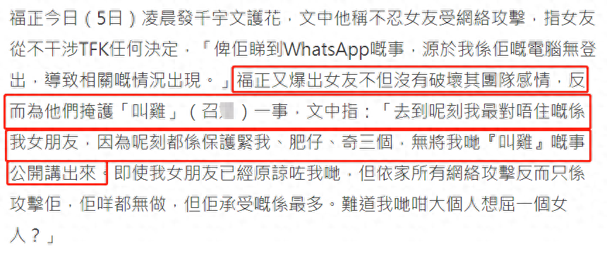 然后福田用实际行动做出回应,他凌晨发布长文维护女友,直言自己女朋友根本不是组合破坏者,甚至还帮忙隐瞒他们一起嫖娼的事……