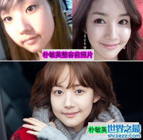 朴敏英大方承认整容,并公布了自己整容的地方,称自己在初中的时候就做过了双眼皮的手术,随后妈妈希望更加的漂亮,于是先后开始了隆鼻,削骨,垫下巴等一系列的整容手术,经过几年来不断的整容,朴敏英终于拥有不少人都羡慕的美貌,有着好看的上镜的瓜子脸,大眼睛也十分的传神,高挺的鼻梁更是让五官看起来更加的立体,总之就是整容成功,丑女大翻身。推荐阅读:四大丑女。