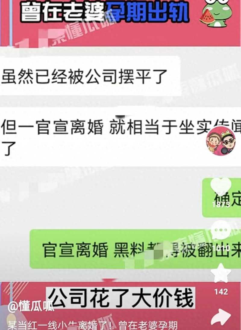 今天下午,一些媒体爆出消息称,瓜呱透露一线明星演员离婚,并在妻子怀孕期间出轨。