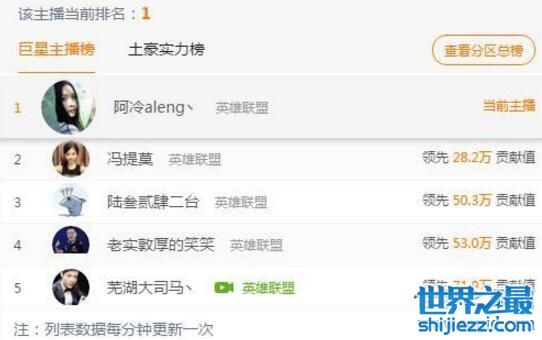 27日晚9点,斗鱼阿冷aleng准时开播,直播间迅速聚集了500+的贵族守护。同时,阿冷粉丝团迅速聚集起40W人气,支持阿冷直播。仅仅开播一分钟,人气涨了6W,与此同时占据巨星榜第一名,十分钟后开始领先第二名40+万贡献值,相当于4W的人民币。