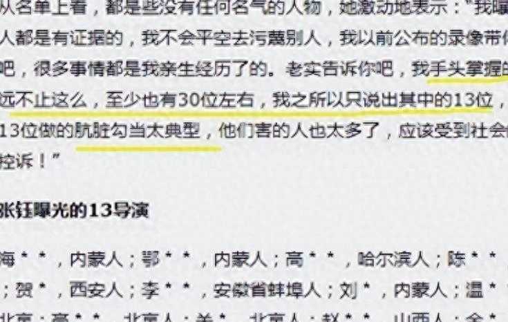 然而有趣的是,张钰并没有一次性爆料,而是先整理出了13位导演和制片人的名单。在这份名单中,她只公开了姓氏和籍贯,名字被打码处理。