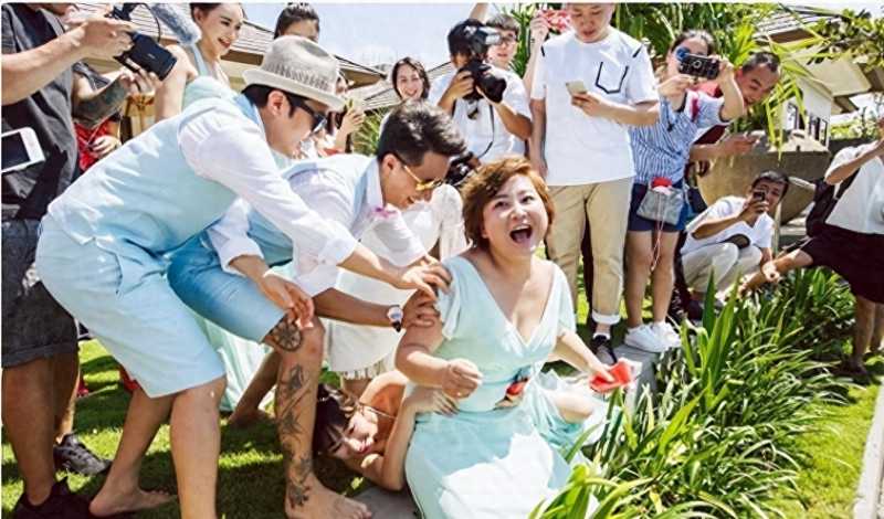 在一场演员的婚礼上,一些男星提议将柳岩扔进游泳池,只是为了看她被水浸透后的曼妙身姿,但幸好贾玲用自己的身体挡住了柳岩。然而,