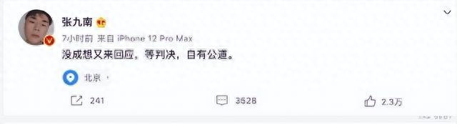 面对家暴、出轨的铁证事实,不知道张九男哪里来的底气,竟然嚣张地说:“等判决,正义就会到来。”