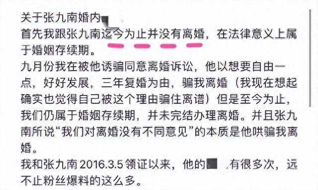 3月3日,张向南前妻在社交平台曝光了张九男婚姻不忠、家庭暴力的丑闻。