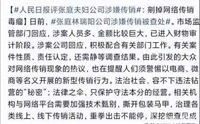 张庭夫妇涉嫌传销的传闻从去年12月开始流传,并流传了半年之久。 今年4月,他们终于尘埃落定。