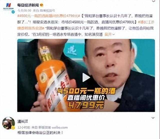 直播中,潘长江声称自己与茅台董事长十几年交情,并称自己把董事长喝醉后得到了最好的价格。
