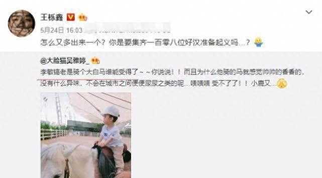吴雅婷分享了她的心情,骑白马的李敏镐也加入了她的“后宫名单”,王栎鑫为此调侃她是准备凑齐一百零八位好汉吗?看着自己的老公还要去追别的男明星,