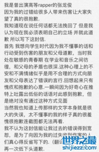 而张龙俊也公开了手写信,说道:“因为我的错误带给很多人伤害和失望表示歉意,因为我不懂事的行为受到伤害的朋友和父母感到很抱歉。虽然当时并不是真心的,但现在回头看感觉非常惭愧与抱歉,在Twitter做的事情真心的表示抱歉,我会真心地反省。”