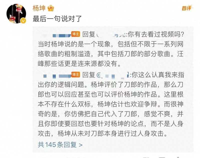 刀郎的新歌《罗刹海市》成为了热门话题,很多人对这首歌发表了自己的看法,其中也包括疑似被内涵的杨坤和汪峰。杨坤回应了网友的评论,疑似认为《罗刹海市》骂的就是那些网暴的人。
