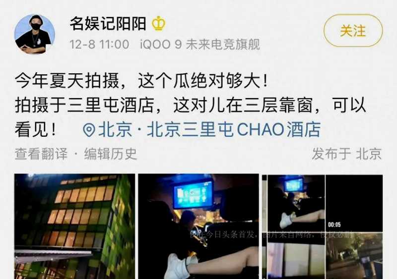 然而,当“名娱记阳阳”跃然而至,公之于众的男女明星照片和关键信息便揭晓。这组图片呈现的情景让人遐想无限,男子赤裸上身站在窗前,女子坐在床上,但却脸部遮挡,增添了神秘感。同时,阳阳提供的信息也让人不禁联想到时间和地点,一切似乎都指向三里屯酒店,发生在今年夏天,而他明示随时准备曝光更多信息。这些细节如同一幅拼图,逐渐构成一幅清晰的画面。