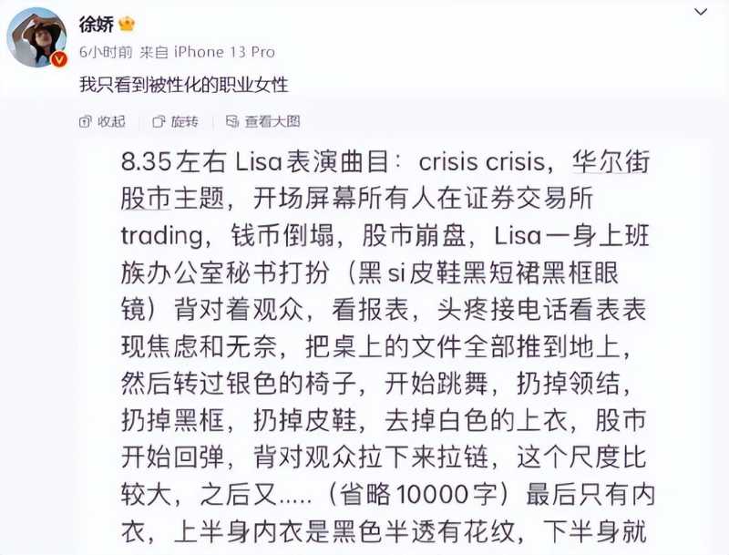 消息一出,立即引发广泛关注与热烈讨论。主要关注点集中在Lisa的身份和疯马秀性质之上。
