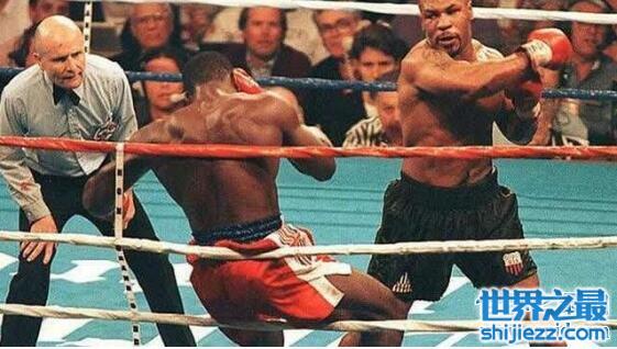当年战无不胜的拳王泰森本来是要和刘易斯比赛的(那是他还是无名小将,后来成为一代拳王,并且KO了泰森),泰森为了夺取另一拳击组织的金腰带,与霍利菲尔德开打,但是霍利菲尔德是个老油条,利用搂抱,头撞等各种下三滥的手段,泰森有劲也试不出来,后来还用头撒开了泰森的眼角,并且利用这个伤口KO了泰森,才为后来发生的泰森咬耳朵打下了基础。