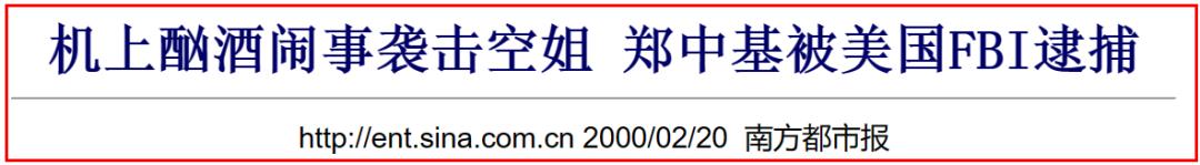 2000年,郑中基在飞机上酒后闹事,不仅抽烟、骚扰乘客,遭到制止后还殴打空姐和机长,导致飞机迫降……