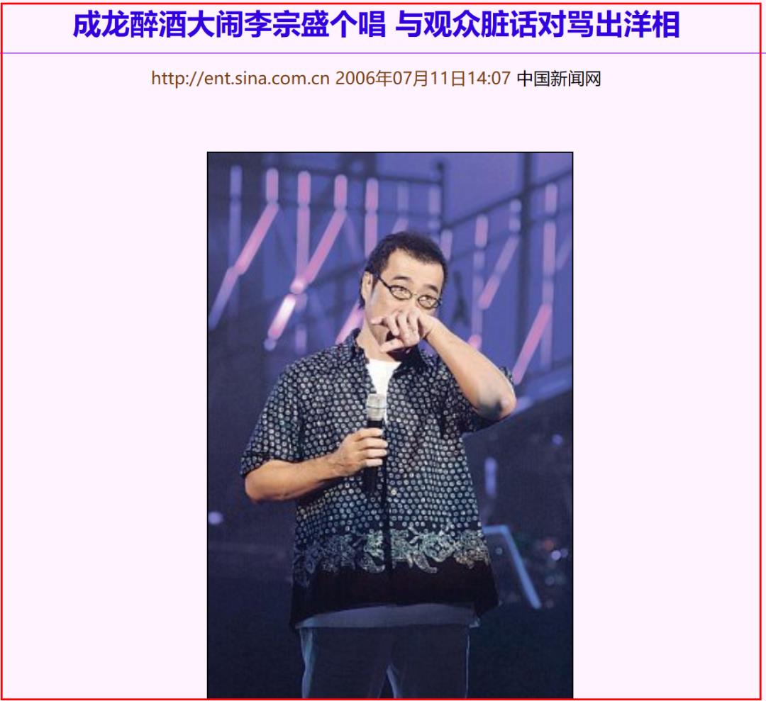 2006年,在李宗盛的演唱会上,醉酒后的成龙突然纵身一跃,跑上台非要和李宗盛合唱。