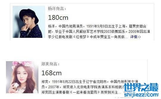 其中最有力的一个证据就是一张杨洋和郑爽吻戏的照片,我们知道郑爽的身高是168cm,如果杨洋身高真的是180cm的话,那么杨洋和郑爽的身高是相差了12厘米的,在许多人严重,这样的身高差就是最萌身高差啊。