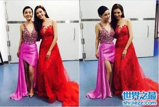 郭采洁与林志玲一同出席品牌庆典活动。在舞台上,两位女神一红一粉上演了“最萌身高差”。