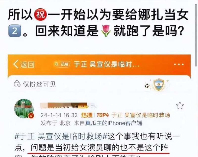 然而当新剧即将开拍时,这位女演员却爽约,转而接演了另一部戏。为了应急,于正只得找来吴宣仪接演。而在直播过程中,于正公开表示了对这位女演员的不满和失望。