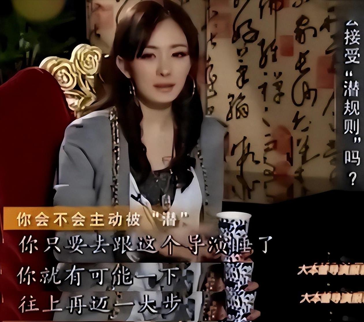 当主持人问她怎样看待潜规则时,她是这样说的:“你只要跟这个导演睡了,你就有可能一下再往上迈一大步一线演员的位置。”