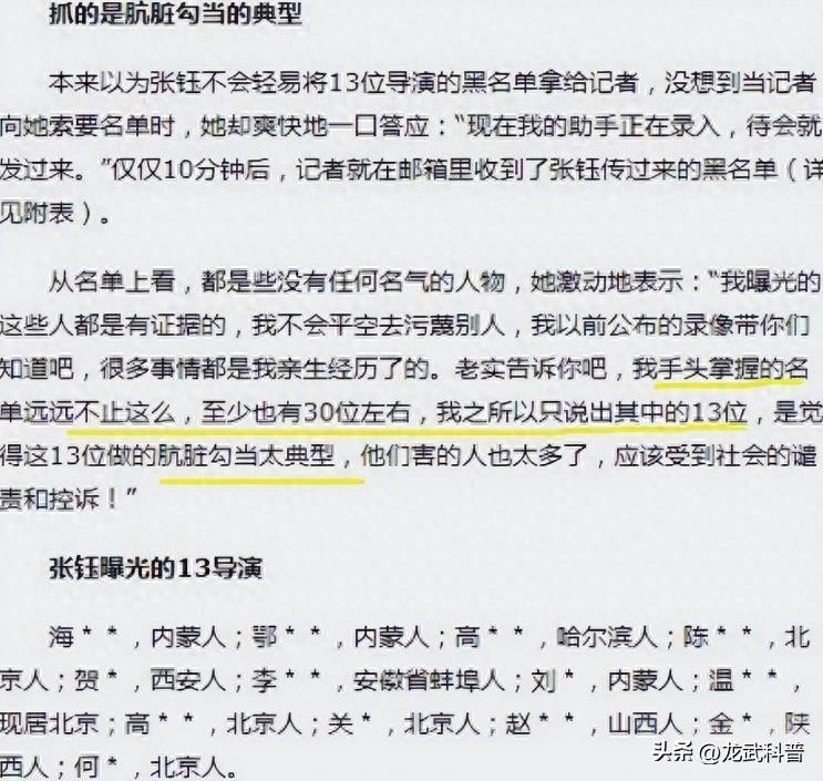 第一个率先曝出“潜规则”事件的女星则是女演员张珏,她带着20盘录像带和若干录音,爆料自己所获得的角色都是通过“陪睡”才争取到的。