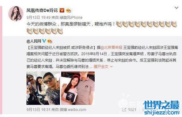 王宝强村民谈宋喆确实让人感动,而一直都没有动静的娱乐圈,也终于有人站出来为宝强说话了,凤凰传奇主唱玲花转发宋喆被抓微博,并配文,今天的微博群众,那真是锣鼓喧天,鞭炮齐鸣!从去年曝出马蓉出轨要离婚的事情开始,娱乐圈鲜有动静,毕竟是人家家务事,出面也比较尴尬,不过如今宋喆被抓,马蓉也被限制出镜,据说也还在调查当中,说不定也会涉及刑事案件,再等后续发展吧,反正王宝强村民是非常不喜欢马蓉的。