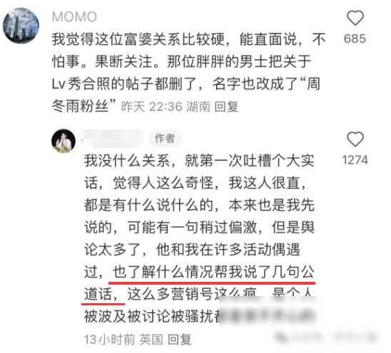 然而,这场明星与富豪的对决并未就此结束,反而愈演愈烈。富婆姐再次发文回应,详细描述了与明星合影的环节以及她对周冬雨的不满之处。她认为周冬雨的举止确实不够礼貌,与其他明星相比有明显的差异。而富豪哥的站队也被她解释为对事实的支持,毕竟富豪哥是有钱人,不会为了无端指责一个明星而胡编乱造。