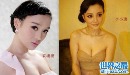 袁姗姗与李小璐也是非常相像的,尤其是两人发型相同是,尤为明显。不同的地方可能是嘴了,袁姗姗的嘴唇更厚一些,嘴唇有些外翻。