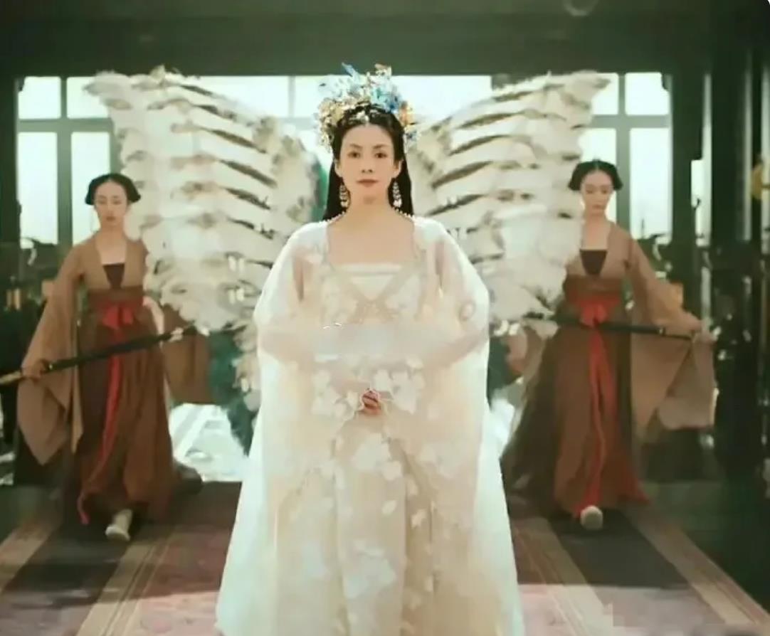 ▲章子怡在《上阳赋》插着翅膀扮少女的造型,当时就被网友批太老。
