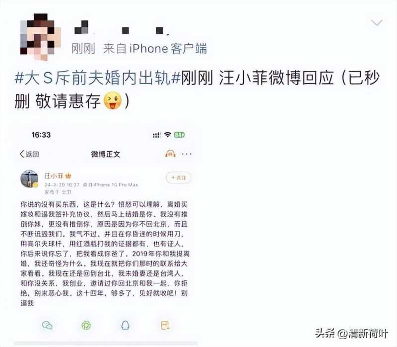 一切开始于3月20日下午,大S忽然在微博发表了一篇长文,这篇长文犹如炸弹,让原本就躁动的社交媒体瞬间沸腾。在这篇文章中,她痛斥汪小菲的婚内出轨和孕期家暴。大S写道,她刷卡购物是为了发泄心中的愤怒,而这愤怒的源头可不简单。