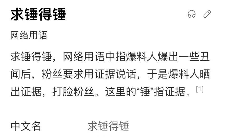 后来她放出证据来,打了粉丝的脸,于是就有“求锤得锤”这个典故。