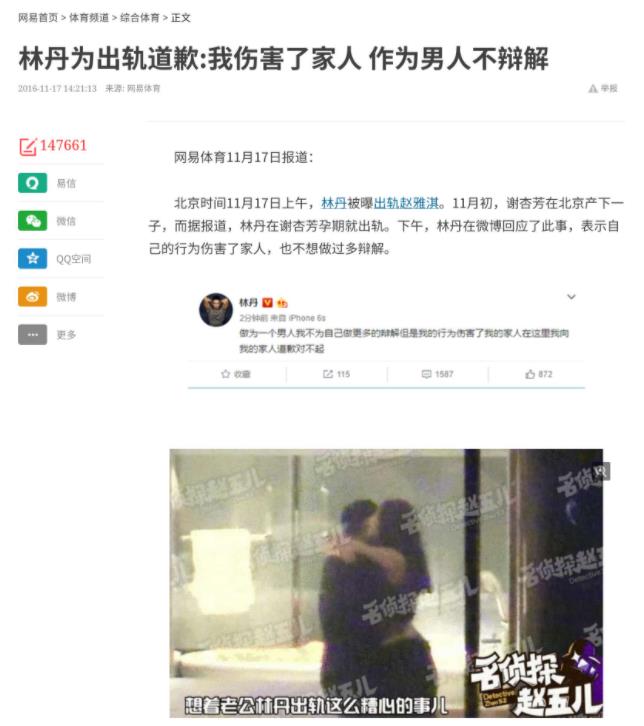 信息来源:林丹为出轨道歉:我伤害了家人 做为男人不辩解.网易体育.2016-11-17