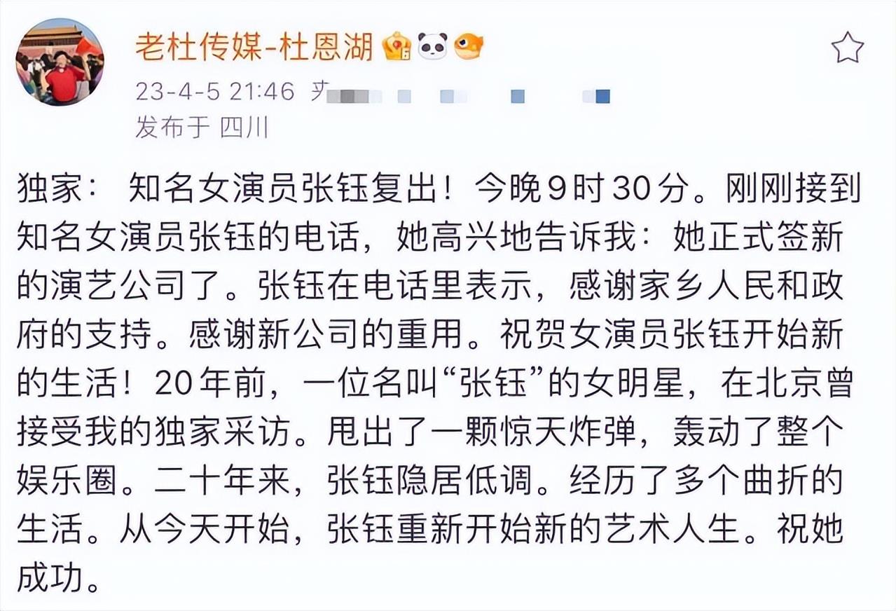 在2023年4月5日的时候,娱乐圈发布了一个超级炸裂的消息,那就是张钰又出现了。