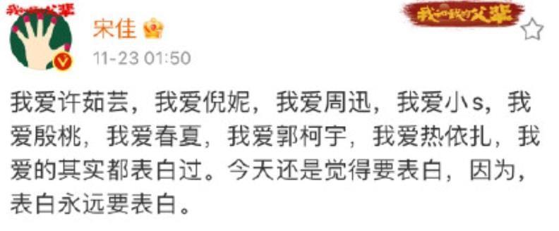 《我和我的父辈》播出之后,小宋佳突然凌晨发文,点名表白了倪妮、热依扎等一众女星,让人看了一头雾水。第二天又澄清是自己喝多了,不知道她是想表达自己酒后吐真言还是,树立可爱女酒鬼的人设呢?