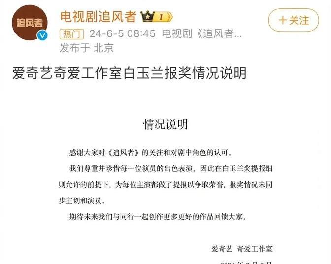 剧组这边则 holdhold 不住解释,说是按奖项规则都提名了主演,只是忘了沟通好。