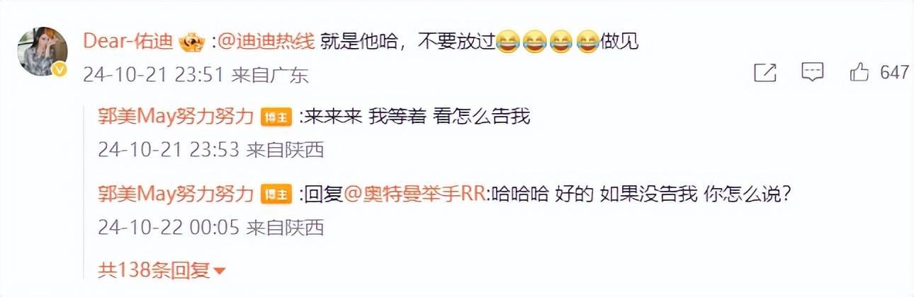郭美美帖子的评论区里,有网友喊话迪丽热巴工作室辟谣号,称就是她(郭美美)在造谣,不要放过。
